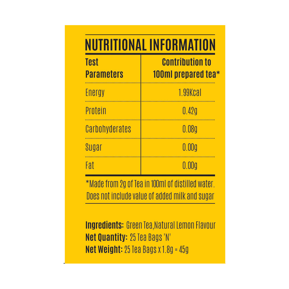 Experience: This tea offers a healthy sip of freshness with the goodness of lemon. Fresh in flavor and great in taste, every drop is filled with wellness.
