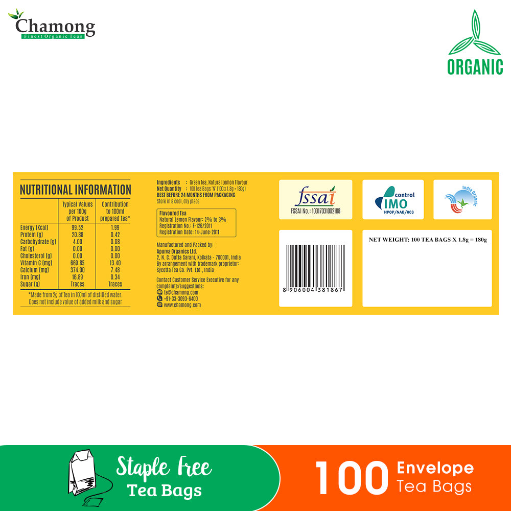 About the Tea: Chamong Lemon Splash Tea is an ingenious blend of the choicest organic Green tea and Lemon flavor to bring forth the goodness of this zesty fruit. These tea bags offer a flavorful and healthy combination of lemon and green tea in a single cup.