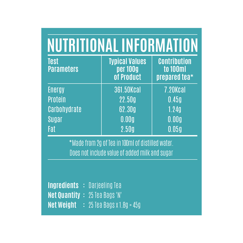 Brewing Instructions: Place a Chamong Darjeeling Tea Bag in a cup, pour freshly boiled 180 ml water over it and let it rest for 3 minutes. Remove the tea bag and serve.