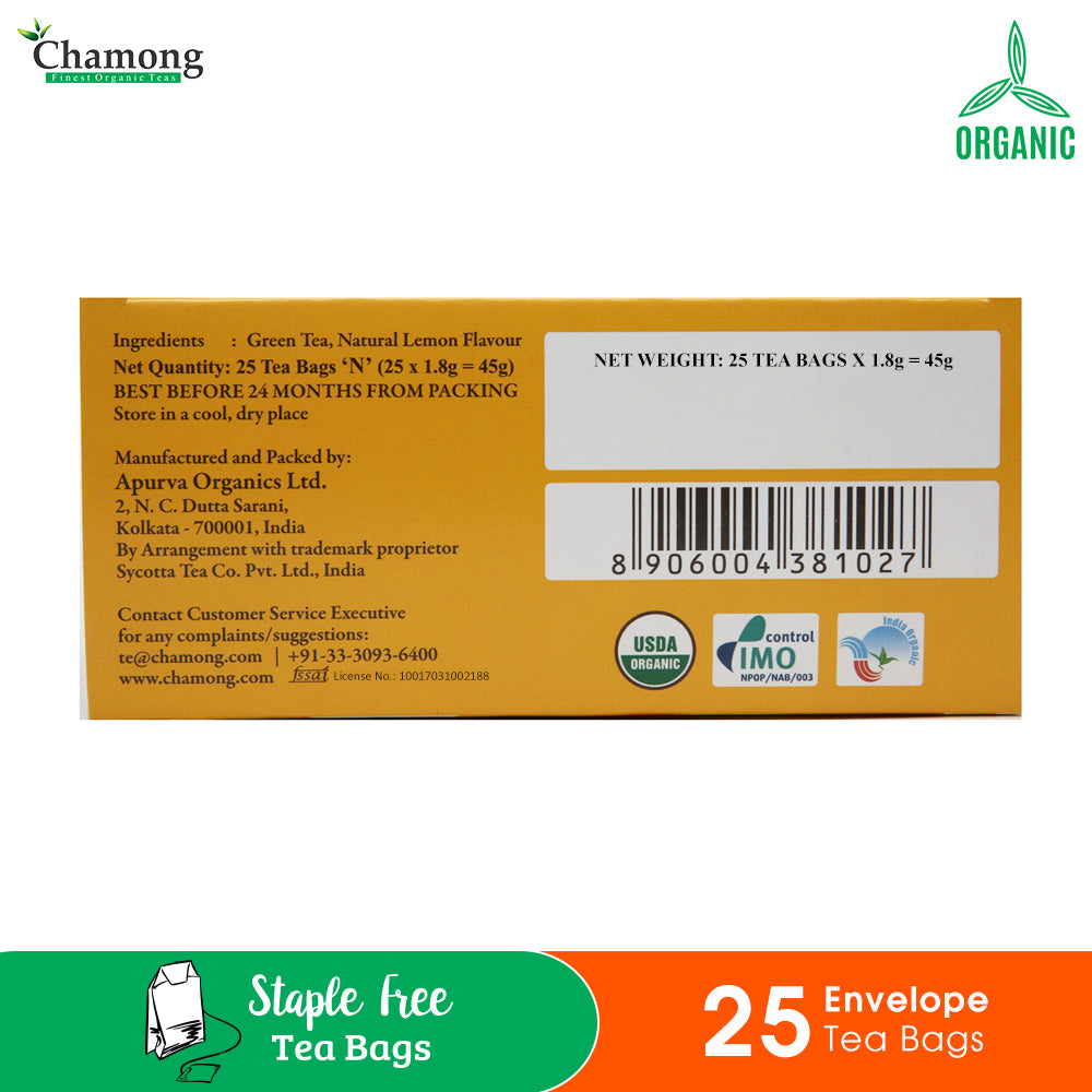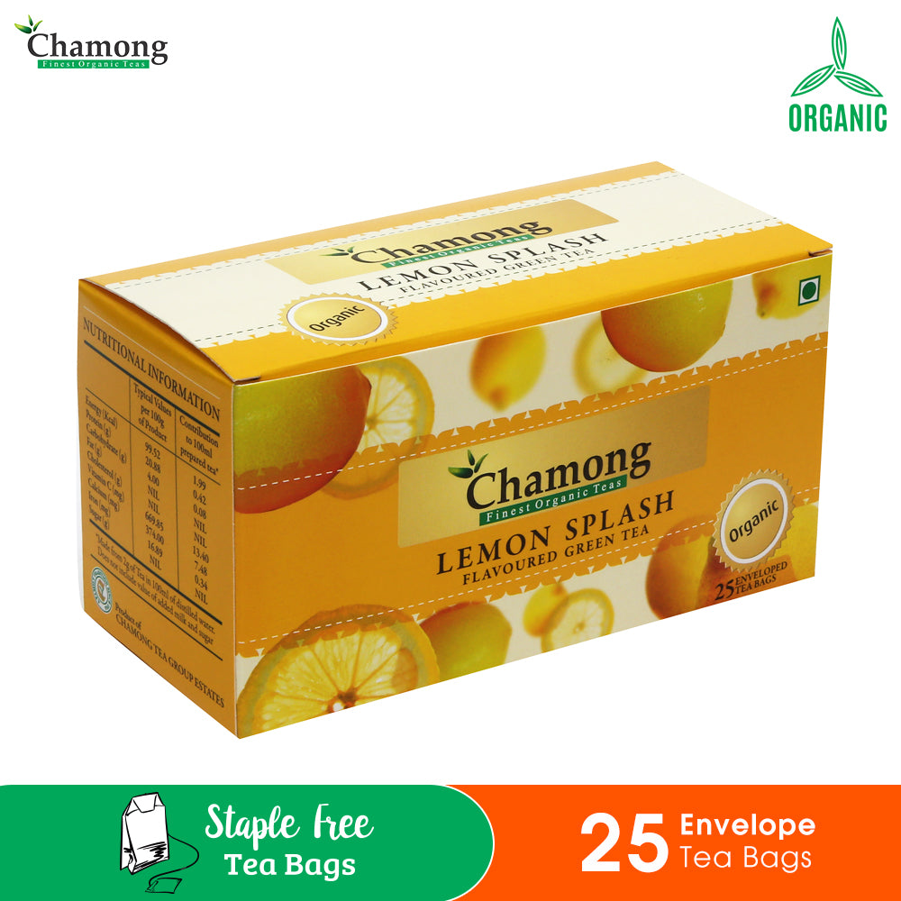 About the Tea: Chamong Lemon Splash Tea is an ingenious blend of the choicest organic Green tea and Lemon flavor to bring forth the goodness of this zesty fruit. These tea bags offer a flavorful and healthy combination of lemon and green tea in a single cup.